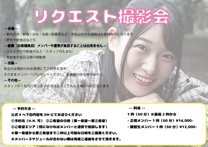 リクエスト撮影会 事前精算用です。